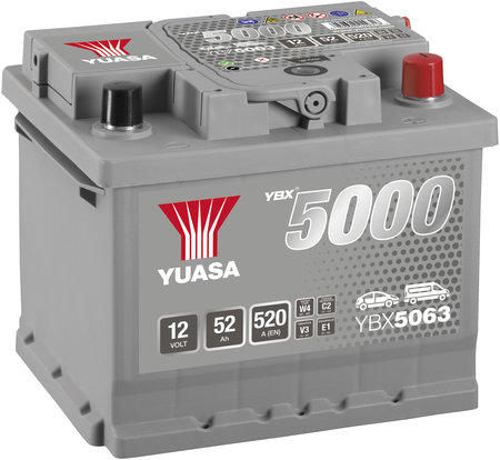 jännite 12 V - kapasiteetti 52 Ah - kylmäkäynnistysvirta (CCA) 520 - napatyyppi T1 - pohjakiinnitys - mitat P 208 x L 175 x K 175 mm - paino 12,4 kg Yuasa YBX5000: - jopa 50 000 moottorin... Lue lisää