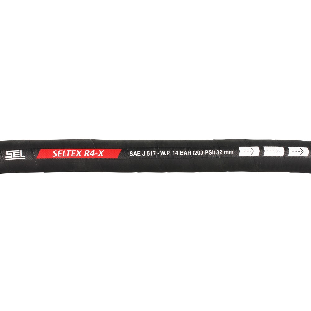 SEL Seltex R4-X - SAE J517 - vahviste vahva tekstiilikudos, upotettu terässpiraali - sisäpinta hydrauliöljyn, dieselin ja veden kestävää NBR-kumia - ulkopinta öljyn, kuumuuden, kulutuksen ja... Lue lisää