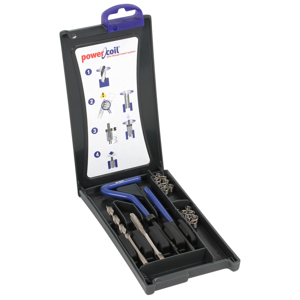 kierteenkorjaussarja M5x0,8 kierteille Sisältää: - 1 x STI kierteenkorjaustappi M5x0,8 - 1 x HSS poranterä 5,2 mm - 20 x irtokierre M5x0,8 (pituus 7,5 mm) - 1 x asennustyökalu - 1 x... Lue lisää