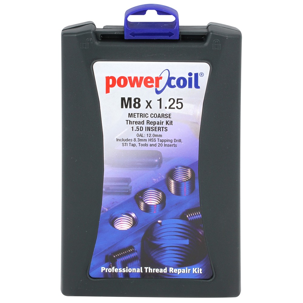 kierteenkorjaussarja M8x1,25 kierteille Sisältää: - 1 x STI kierteenkorjaustappi M8x1,25 - 1 x HSS poranterä 8,3 mm - 20 x irtokierre M8x1,25 (pituus 12 mm) - 1 x asennustyökalu - 1 x... Lue lisää