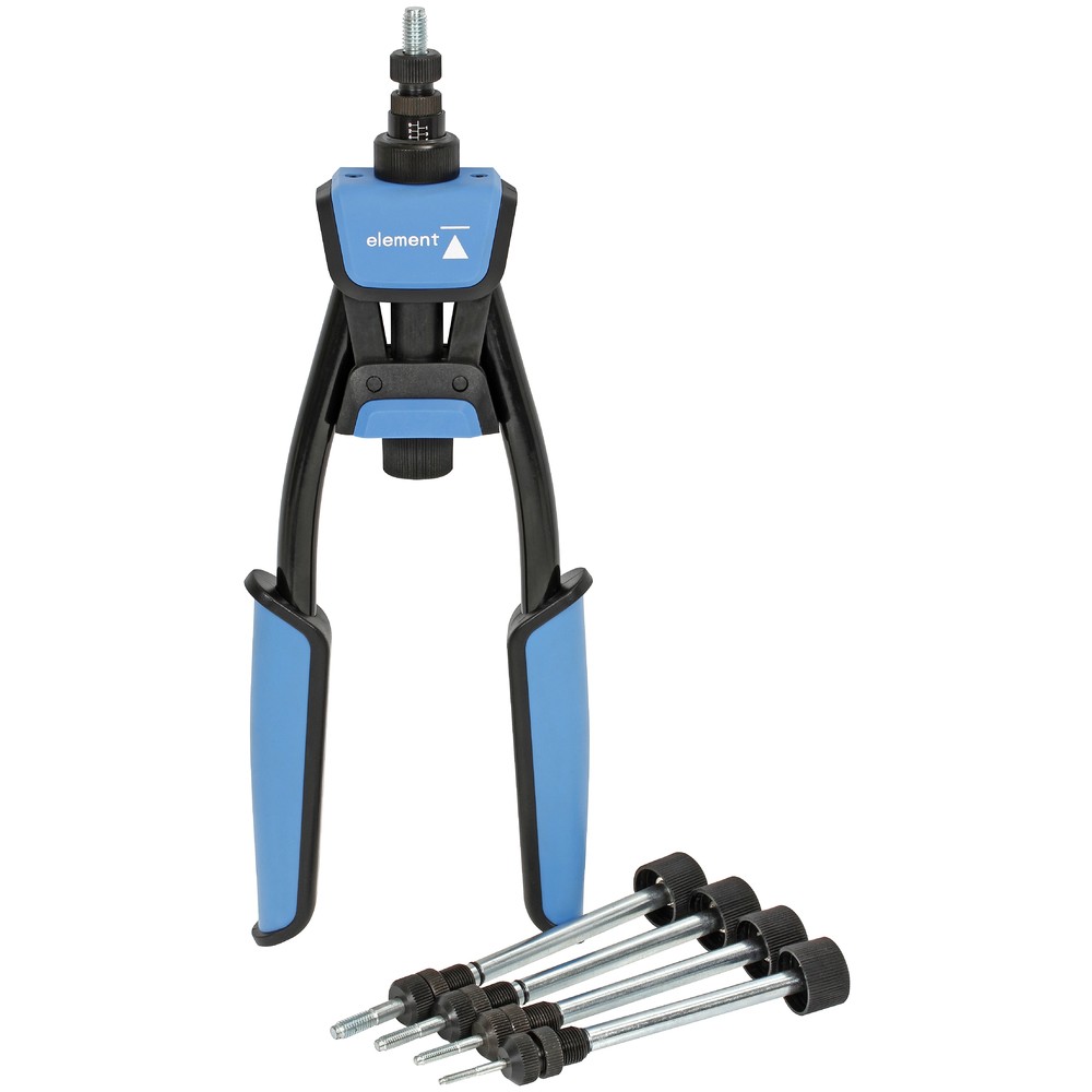kapasiteetti M3 - M8 niittimutterit - materiaali alumiini, kädensijat ABS-muovi - pituus 320 mm - paino 1,34 kg