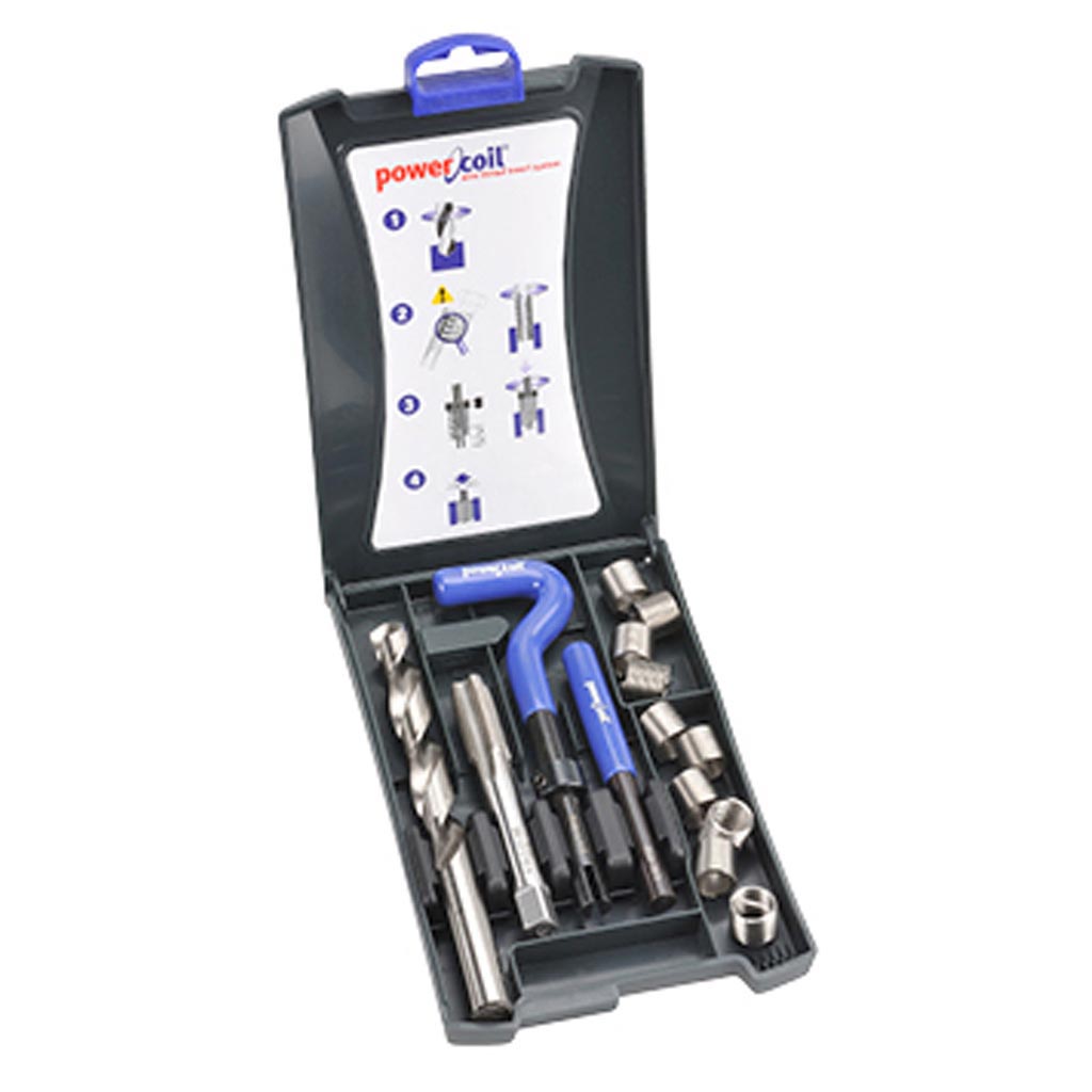 POWERCOIL Kierteenkorjaussarja MF12. Sarja sisältää kierretapin, poranterän, asennustyökalun sekä kierreholkkeja. MF12 x 1.5mm.