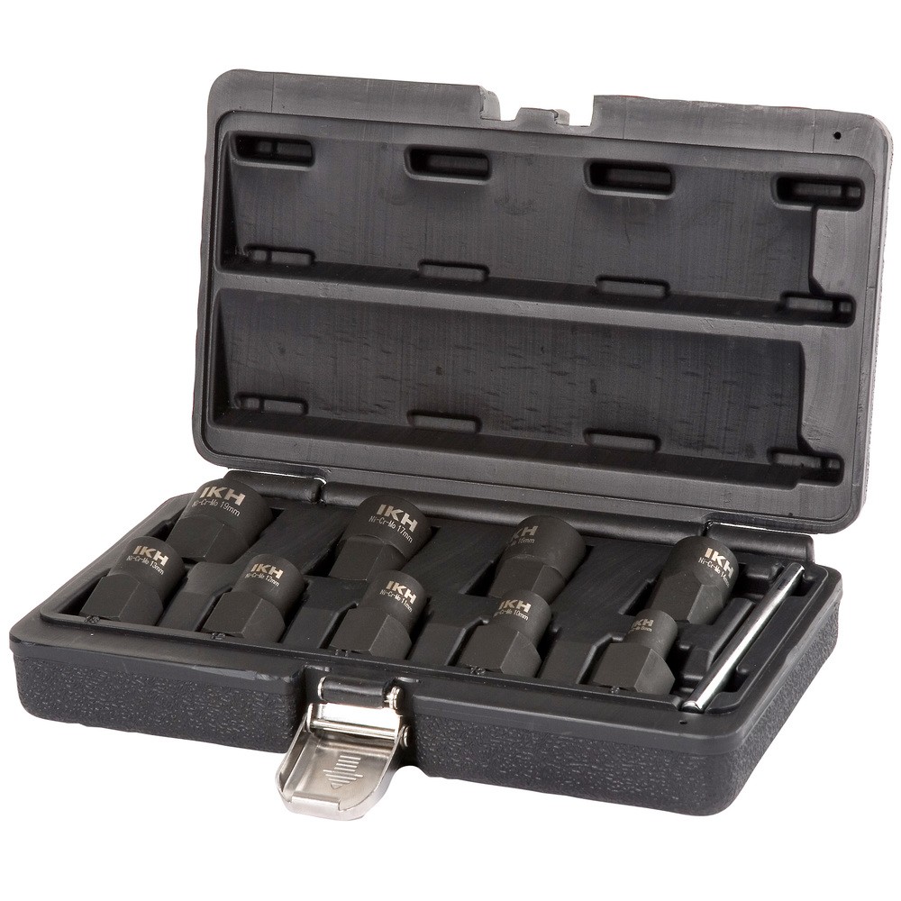 - 9 kpl 1/2" vastakierrehylsyt 8 - 10 - 11 - 12 - 13 - 14 - 16 - 17 - 19 mm