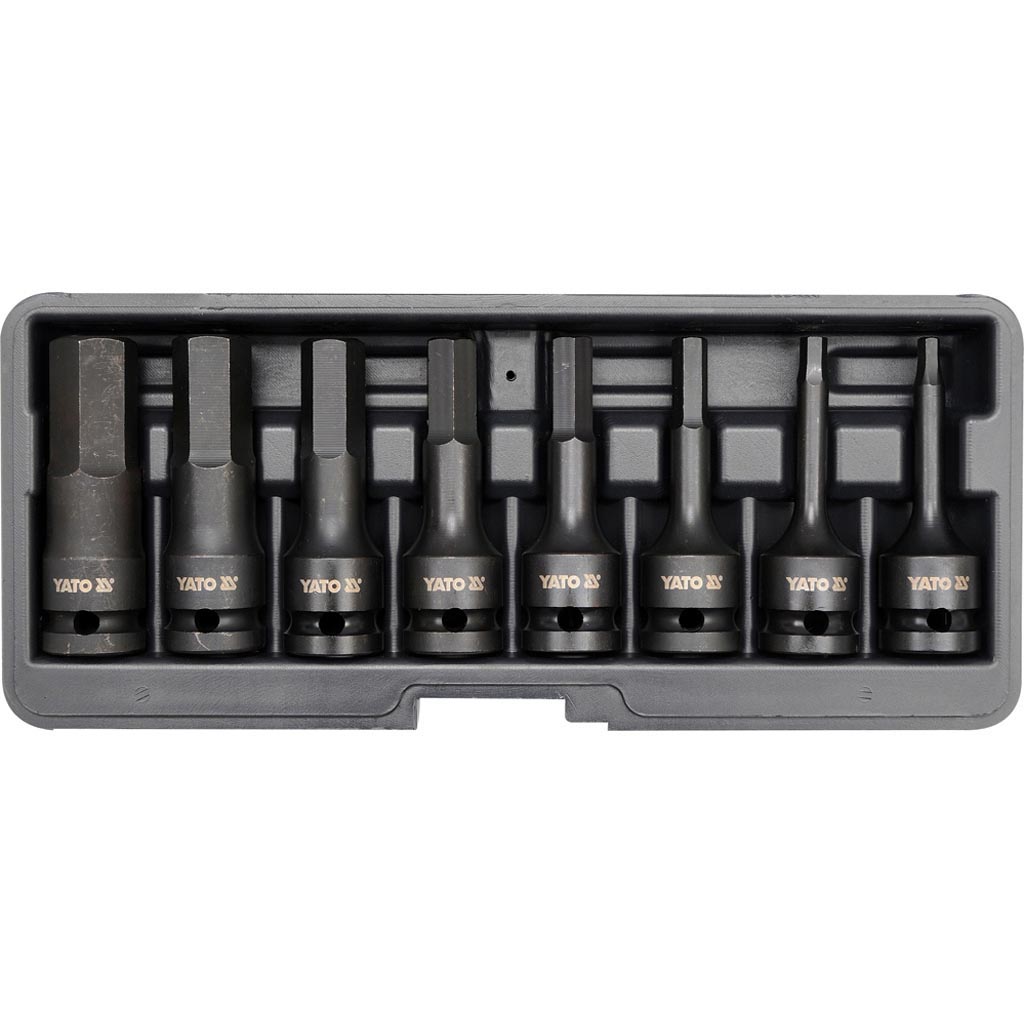 8-osainen sarja sisältää hylsyt: 6, 7, 8, 10, 12, 14, 17, 19 mm. HRC 54. Hylsyjen pituus 78mm.