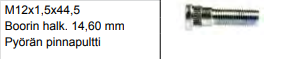 Pyörän pinnapultti m12x1,5x1,5x44,5 Boorin halkaisija 14,60 mm