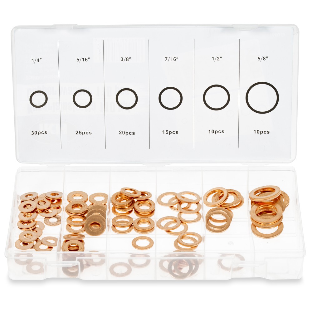Sisältää: - 30 kpl sisä Ø 1/4", paksuus 0,8 mm, ulko Ø 3/8" - 25 kpl sisä Ø 5/16", paksuus 0,8 mm, ulko Ø 9/16" - 20 kpl sisä Ø 3/8", paksuus 0,8 mm, ulko Ø 5/8" - 15 kpl sisä Ø 7/16"... Lue lisää