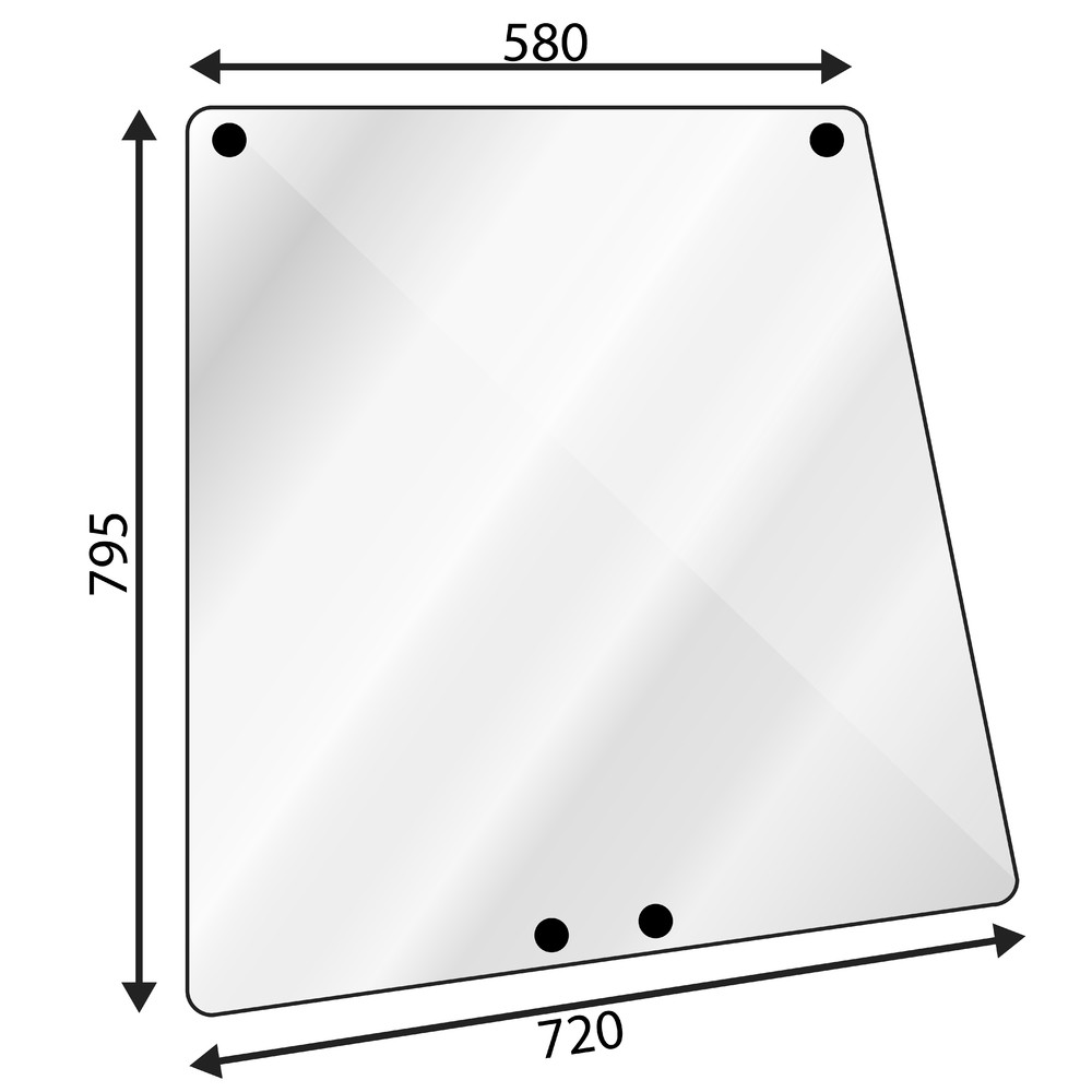 vasen ja oikea - 4 reikää - lasin paksuus 5 - kirkas - kiinnitys reunasuojalla/pulteilla - kolme alakahvan reikää sopivat kaikkiin Valmet 505 Valmet 605 Valmet 705 Valmet 805 Valmet 905 Valmet 615... Lue lisää