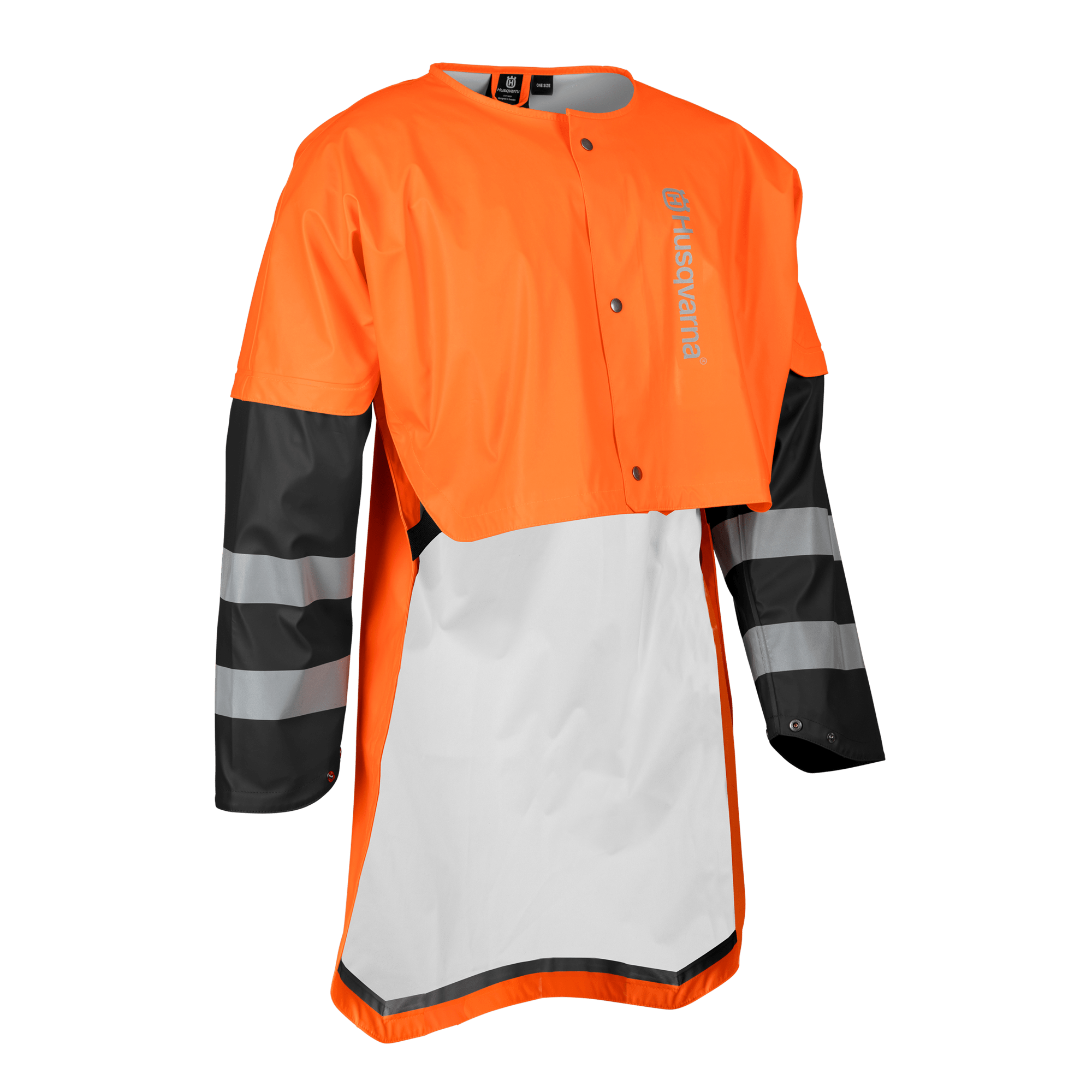 Tyylikkään sadetakin materiaali on PU/PVC-sekoitetta. Edessä säädettävä napitus ja erikoispitkät, painonapein varustetut hihat.