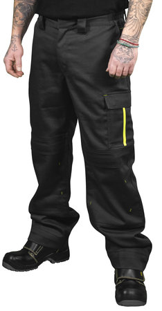 87% puuvilla, 12% nailon, 1% antistaattinen hiilikuitu, 330 g/m² - suojaa valokaarelta ja vähäisiltä hitsauskipinöiltä - kaksinkertainen kangas polvissa - henkilökorttitasku - suorat... Lue lisää