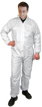 materiaali laminoitua (polyeteeni) kuitukangasta (polypropyleeni), paino 60 g/m² - edessä vetoketju - hupussa, ranteissa ja lahkeensuissa kuminauhakiriste - sopii mm. ruiskumaalaukseen, siivoukseen... Lue lisää