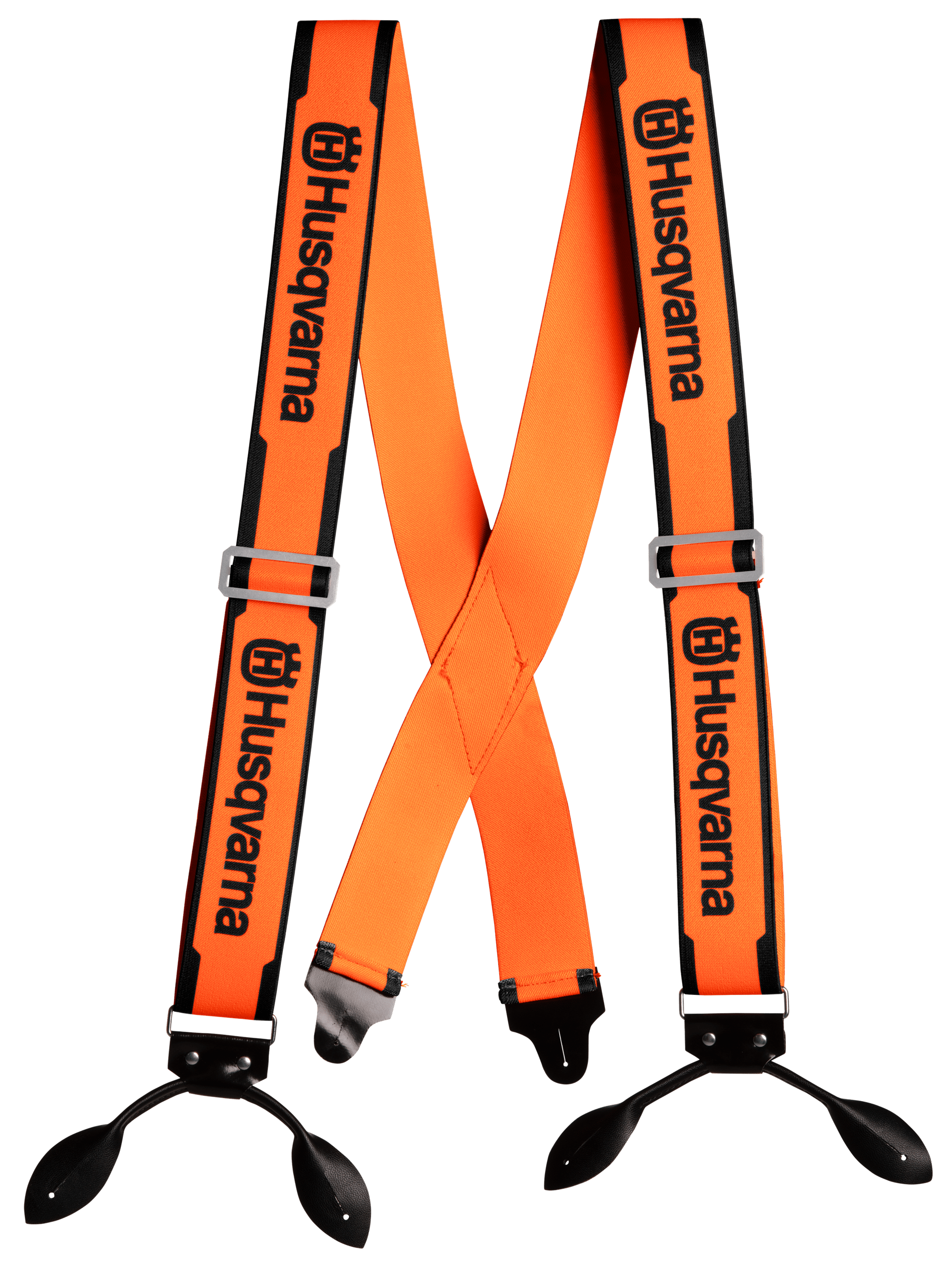 Nahkasoljin varustetut olkaimet. Tarkoitettu vyötärömallisiin housuihin, joissa napit olkaimia varten.