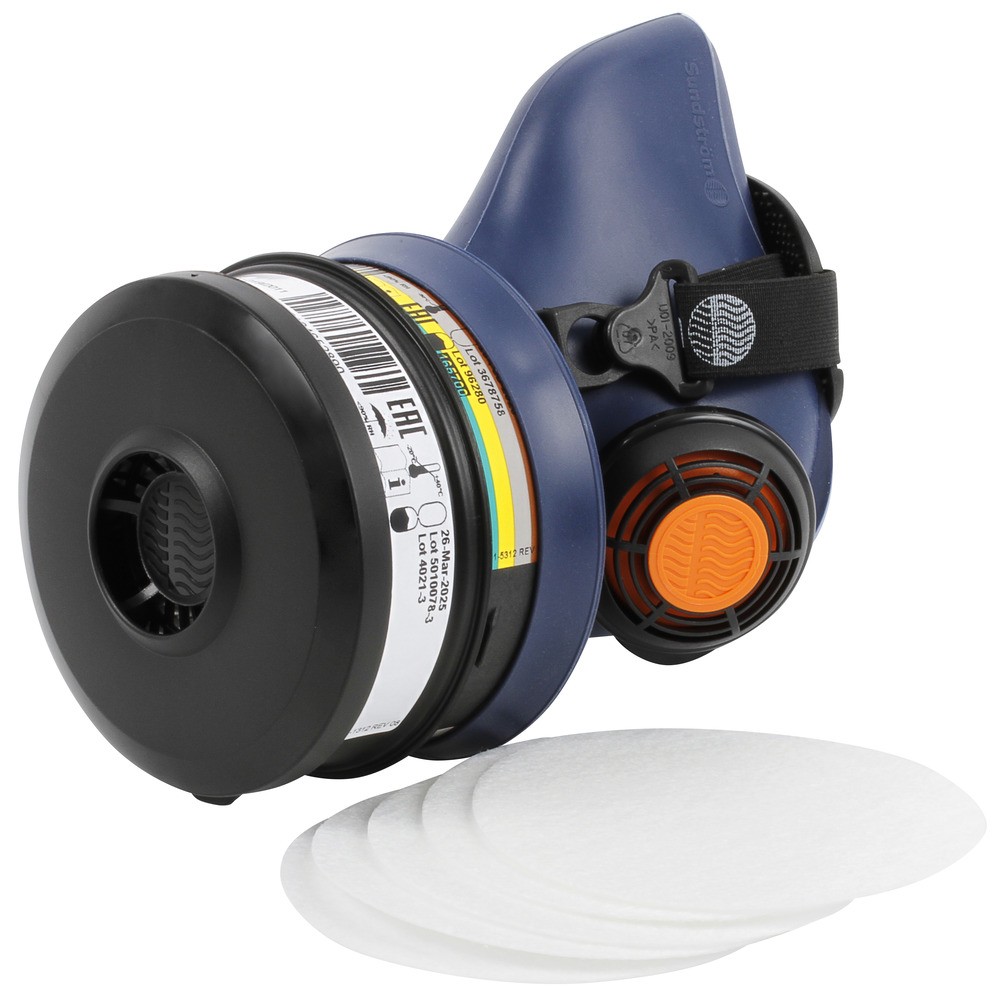 Sisältö: - 1 puolinaamari SR100 - 1 hiukkassuodatin SR510 P3 R (HS500510) - 1 kaasusuodatin SR297 A1B1E1K1 (HS100297) - 5 esisuodatin SR221 (HS500221) - 1 esisuodattimen pidike - 1 puhdistusliina... Lue lisää