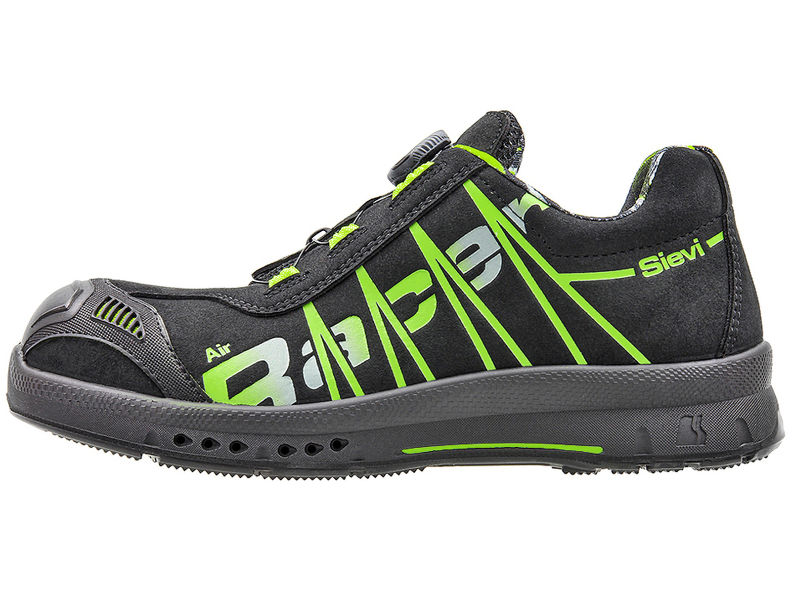 S3-suojaluokan SieviAir®-pohjaratkaisulla oleva puolikenkä BOA®-mekanismilla, teräksisellä naulaanastumissuojalla ja alumiinivarvassuojalla.