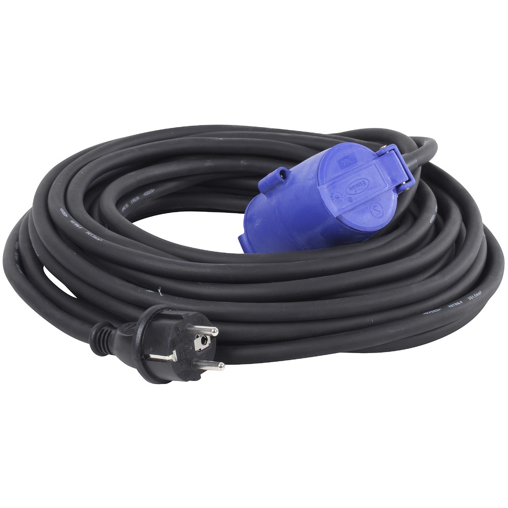 kumikaapeli 15 m, H07RN-F 3x1,5 mm² - 2 x 230 V pistorasia - kaksi maadoitettua pistorasiaa itsesulkeutuvilla suojakansilla - suojausluokka IP44