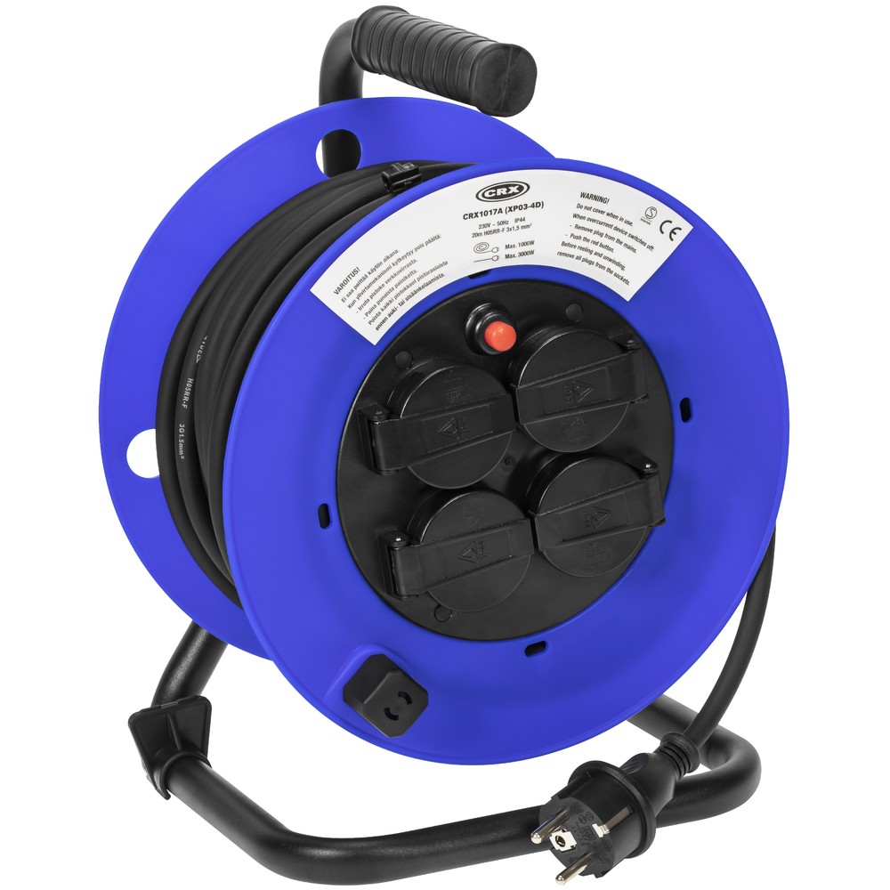 kumikaapeli 20 m (H05RR-F 3x1,5 mm²) - max. kuormitus kelalla 1000 W, kelalta purettuna 3000 W - varustettu ylikuumenemissuojalla - neljä maadoitettua, roiskevesisuojattua pistorasiaa... Lue lisää