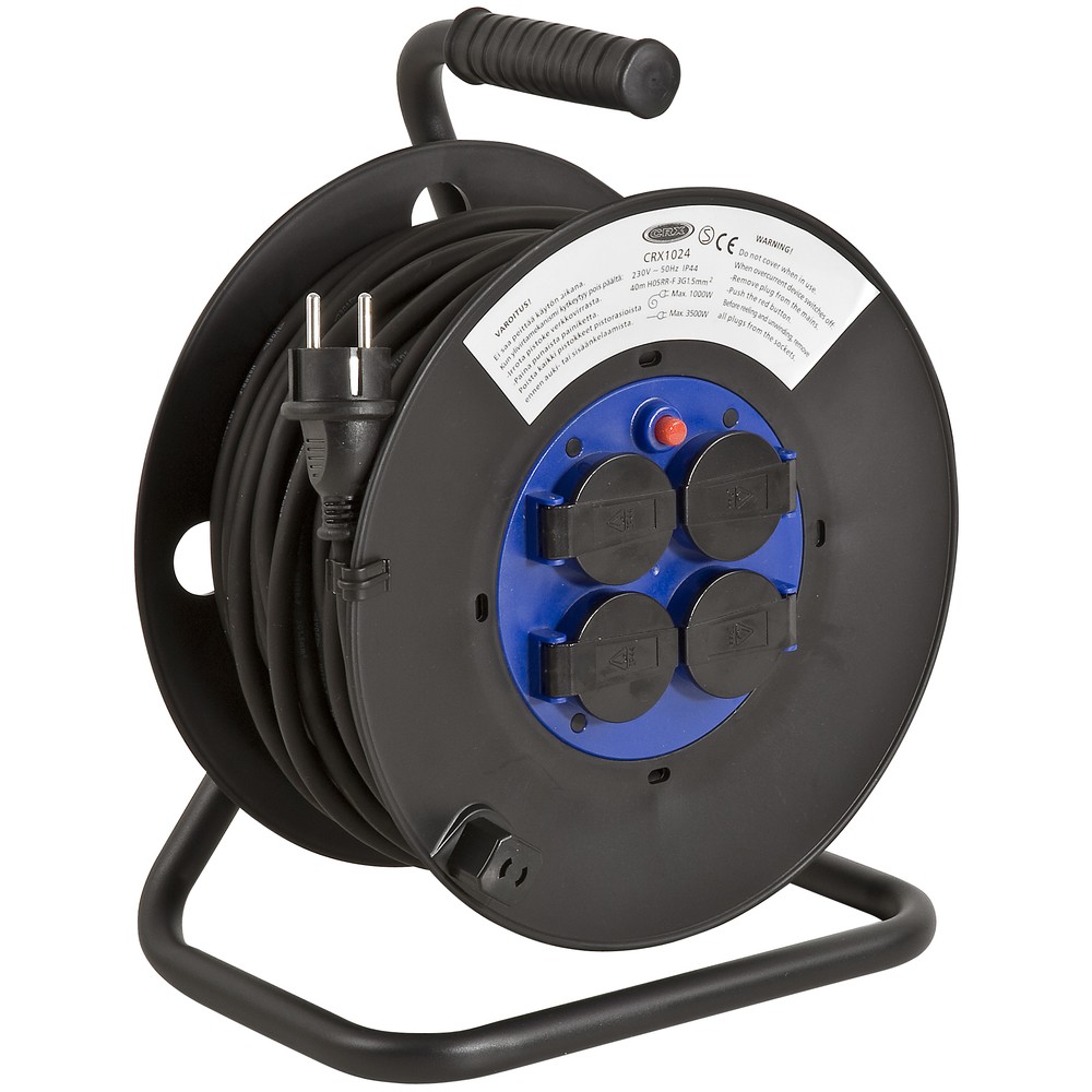 kumikaapeli 40 m (H05RR-F 3x1,5 mm²) - max. kuormitus kelalla 1000 W, kelalta purettuna 3500 W - varustettu ylikuumenemissuojalla - neljä maadoitettua, roiskevesisuojattua pistorasiaa... Lue lisää