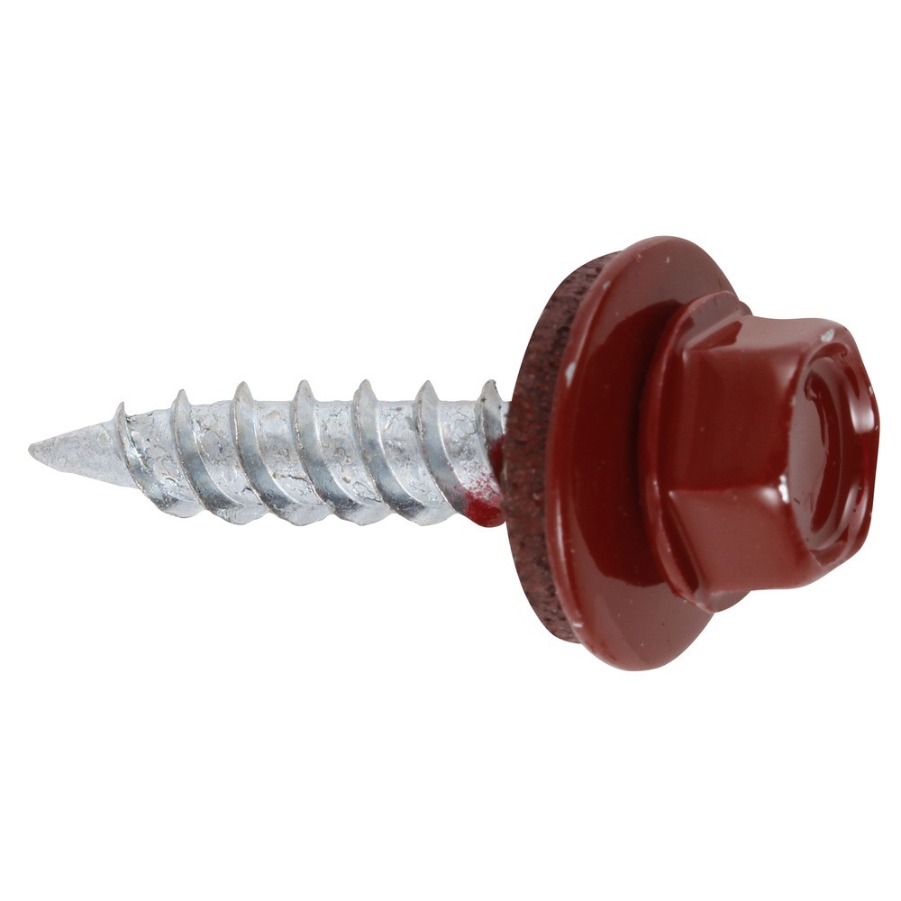 sinkitty ruuvi - sinkitty aluslaatta EPDM-kumitiivisteellä - kuusiokanta laipalla - piikkikärki - koko (d x L) 4,8 x 25 mm - avainkoko (s) 8 mm - Rautaruukin värinro RR28 tummanpunainen - 250 kpl /... Lue lisää