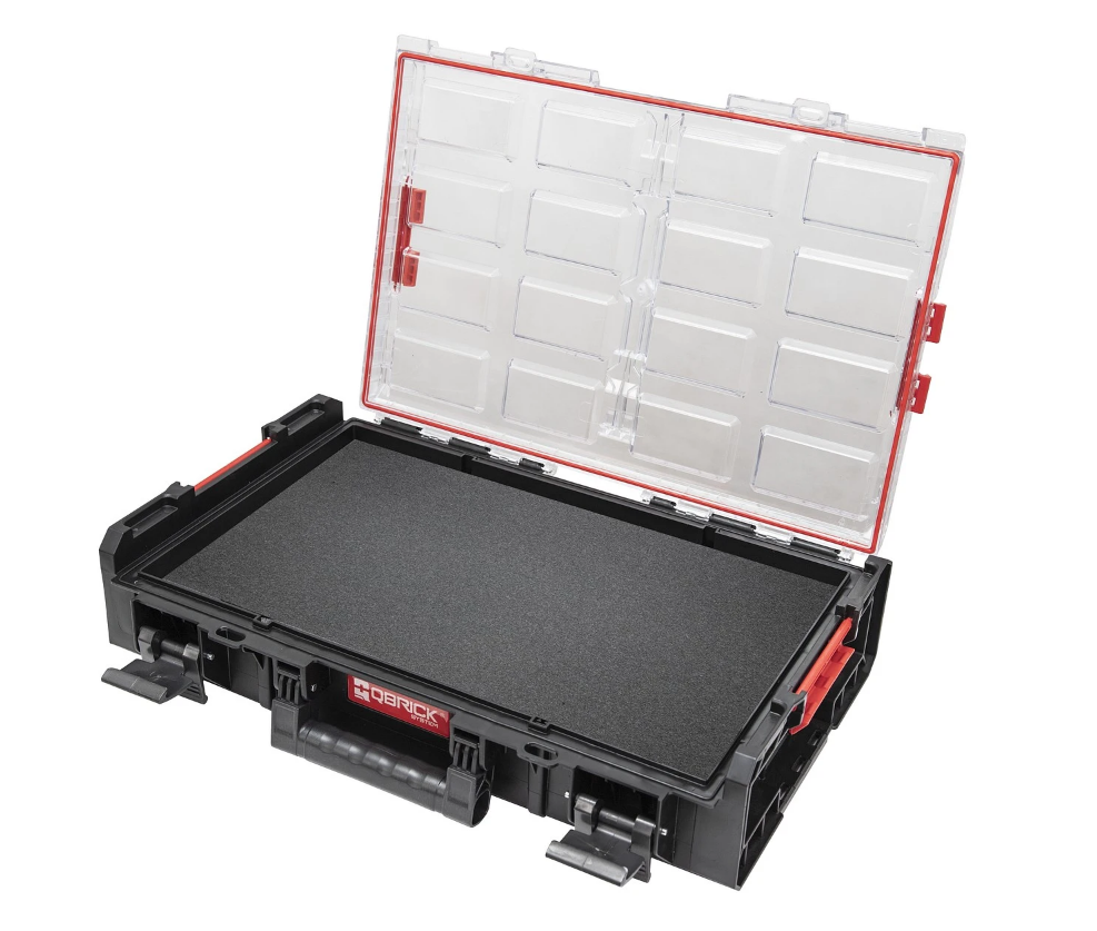 Q-Brick System ONE lokerikko läpinäkyvällä ja iskunkestävällä kannella - sisältää 3 kerrosta (2 x 2 cm, 1 x 3 cm) vaahtomuovia, johon voi muotoilla työkalujen paikat - modulaarinen ONE... Lue lisää
