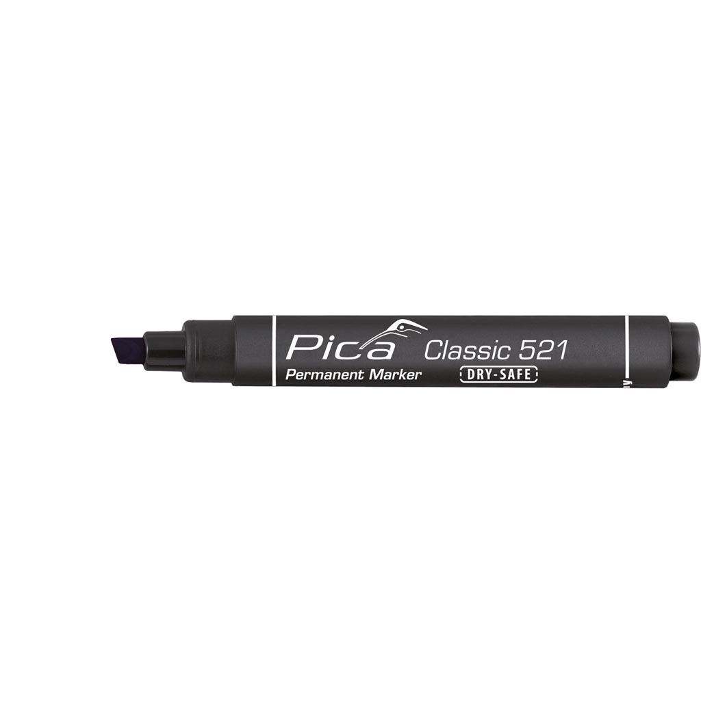 PICA huopakynä Classic 521, viistokärkinen. Permanentti, alkoholipohjainen vedenkestävä huopakynä. Soveltuu hyvin kiiltäville ja huokoisille pinnoille,