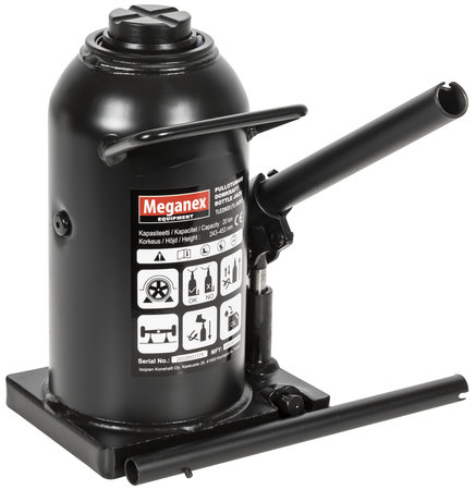 nostokyky 20 tn - nostokorkeus 245-453 mm - varoventtiili suojaa ylikuormitukselta - suositeltu hydrauliikkaöljy VG15-VG32 - pohjan mitat 125 x 155 mm - paino 9,3 kg