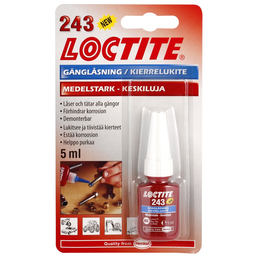 Purettavissa oleva, keskiluja kierrelukite yleiskäyttöön, soveltuu erityisesti < M 36 pulttikoolle. Kestää hyvin öljyjä. Suositellaan kohteisiin joita halutaan